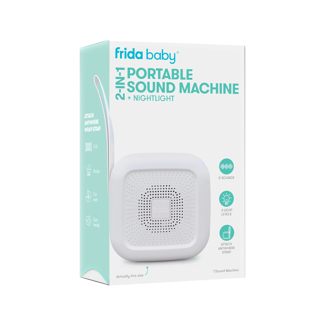 Máquina de sonido portátil 2 en 1, luz nocturna de Frida Baby White Noise Machine con sonidos calmantes para cochecito o asiento, Fridababy