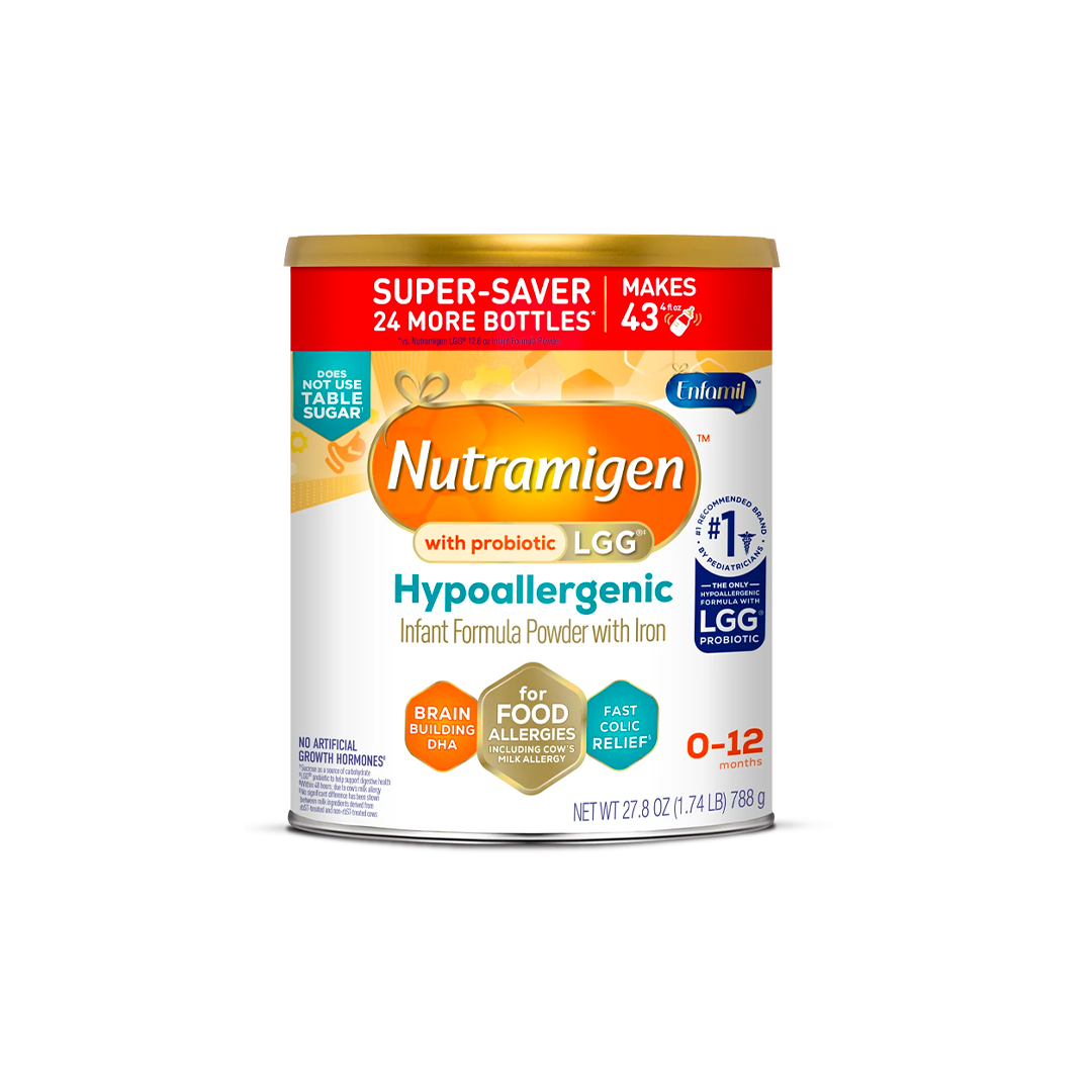 Nutramigen con Probioticos LGG Hypoallergenico , Lata de 27.8 oz, paquete Super Saver.